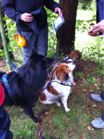 Aber da waren doch noch meine Kumpels - viel spannender und meine Pfoten zog es in diese Richtung anstatt durch das Hindernis. Daher notierte die nette Frau am Posten nur wenige Punkte, Spass machte es trotzdem. :-)